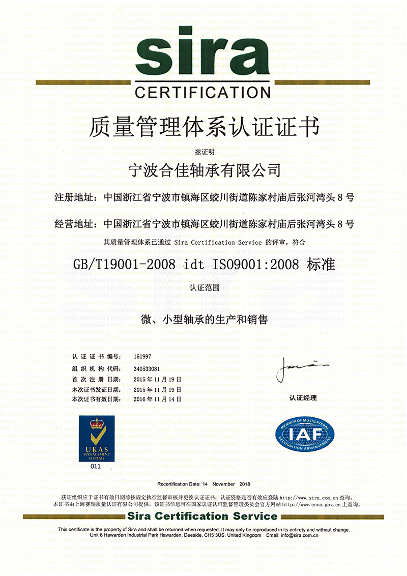 | 公司通過ISO9001:2008質量體系認證 發(fā)布:合佳軸承時間:2015/11/25首先熱烈祝賀我公司正式通過ISO9001:2008國際標準質量體系認證。